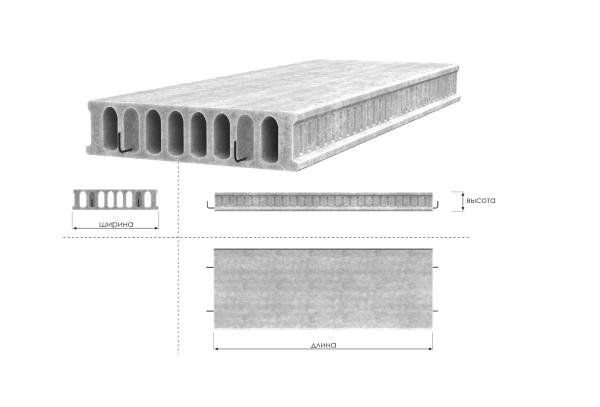 Многопустотные плиты перекрытий тип ПБ шириной 1200 мм с расчетной нагрузкой 450, 600 и 800 кгс/м2.